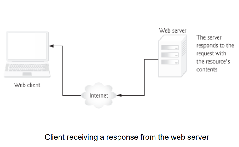 클라이언트(Web client)가 HTTP Request를 서버어게 보내면, 서버가 그 요청을 처리한 후 그 요청했던 content(body)를 보내준다. 그러면 최종적으로 Web Browser가 그 소스를 render(display)한다.