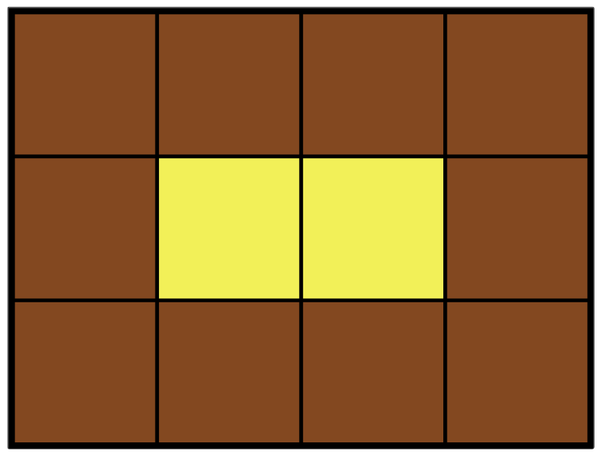 Leo는 카펫을 사러 갔다가 아래 그림과 같이 중앙에는 노란색으로 칠해져 있고 테두리 1줄은 갈색으로 칠해져 있는 격자 모양 카펫을 봤습니다.