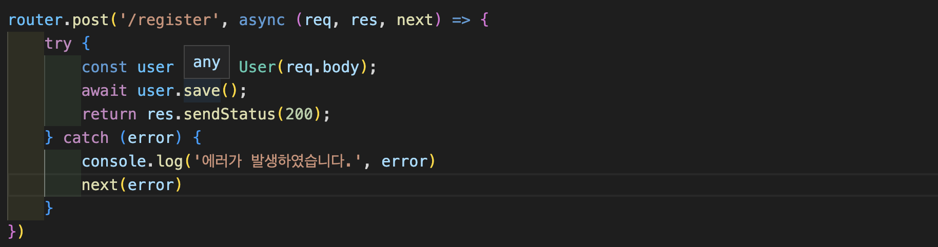 goldpig 2023. 8. 21. 12:37회원가입 기능을 구현하는 백엔드 부분에서 Axios라이브러리를 활용해서 HTTP 비동기 통신을 하는 과정에서 thunkFunctions.js:8 POST http://localhost:4000/users/register 500 (Internal Server Error) 라는 오류가 계속 발생해서 처음에는 클라언트 측면에서 요청하는데 문제가 있나 코드를 계속 수정해보고 했는데도, 에러가 계속 발생해서 골머리를 앓았다. 그러다가 클라이언트 측에서 Axios를 활용한 요청 부분에는 문제가 없다고 판단하고 에러가 500번대 이니깐 서버측에서 요청을 받고 처리하는 과정에서 문제가 있다고 판다.