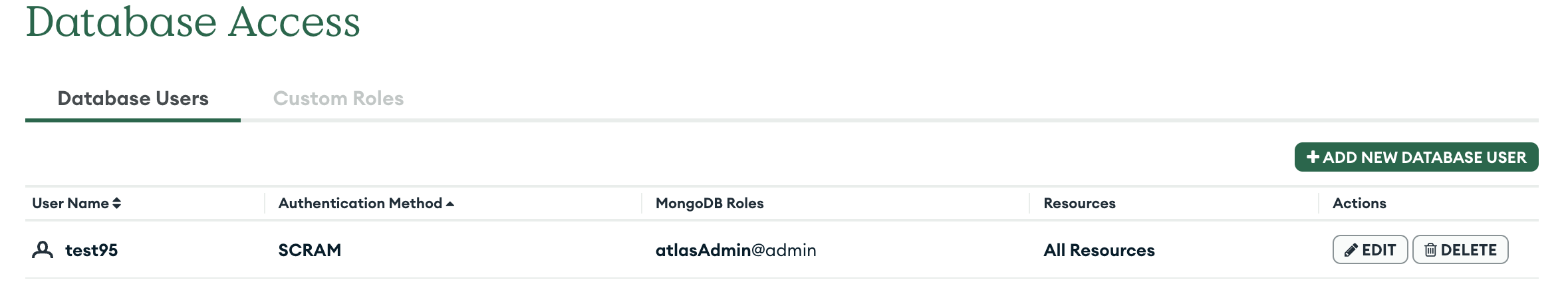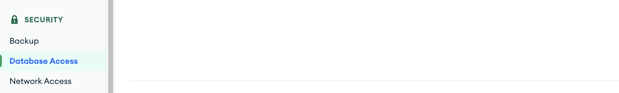 그래서 아래와 같은 과정을 겪었더니 문제를 해결할 수 있었다. 우선 user에게 권한을 설정하기 위해 Database Access 항목에 들어갔다.