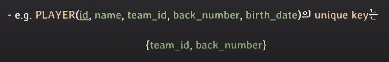 유니크 키는 primary key가 아닌 candidate keys를 의미한다 즉, alternative key! {id}를 제외하고