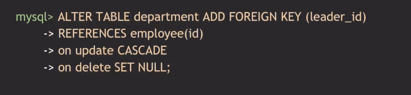 이렇게 테이블을 수정해 주는 이유는 department 테이블을 만들 당시에 employee 테이블이 없었기 때문입니다.