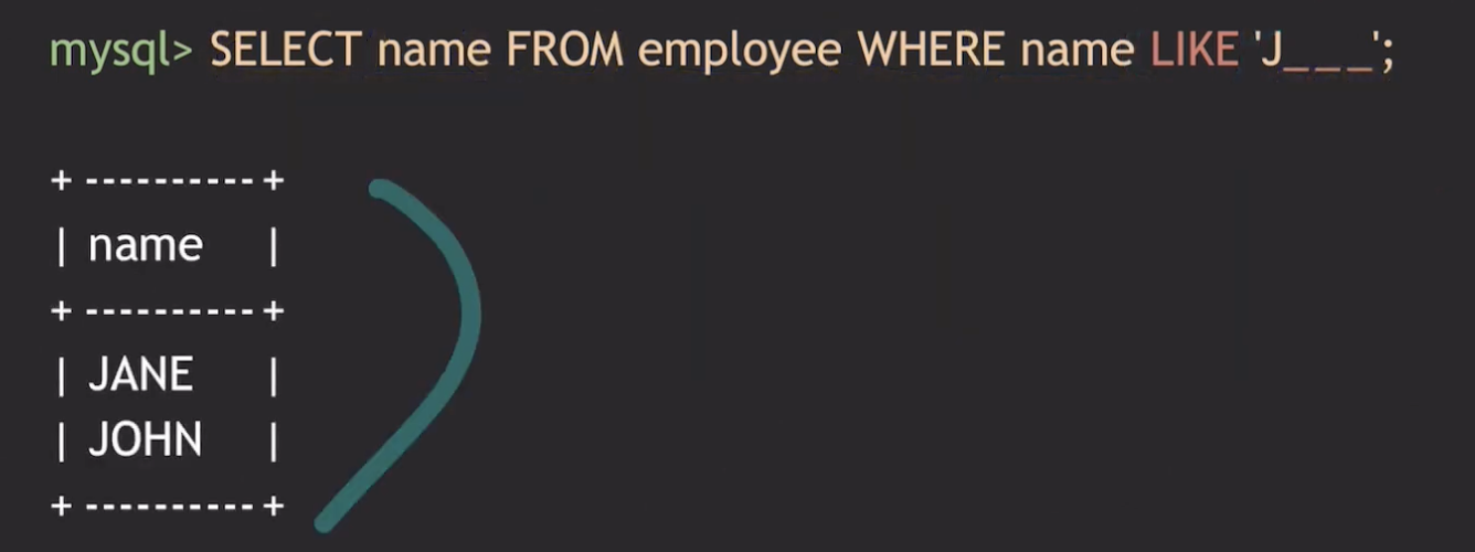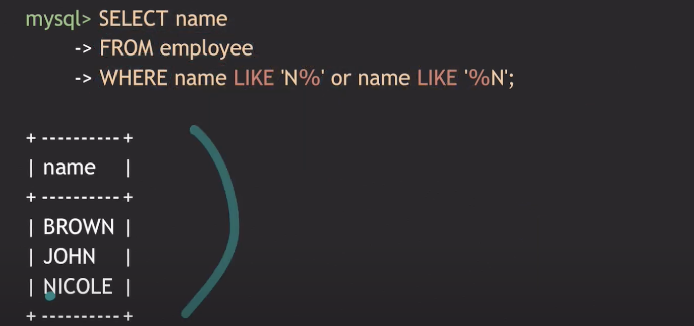 이때, '%' 는 '0개 이상의 임의의 문자들을 의미한다.'