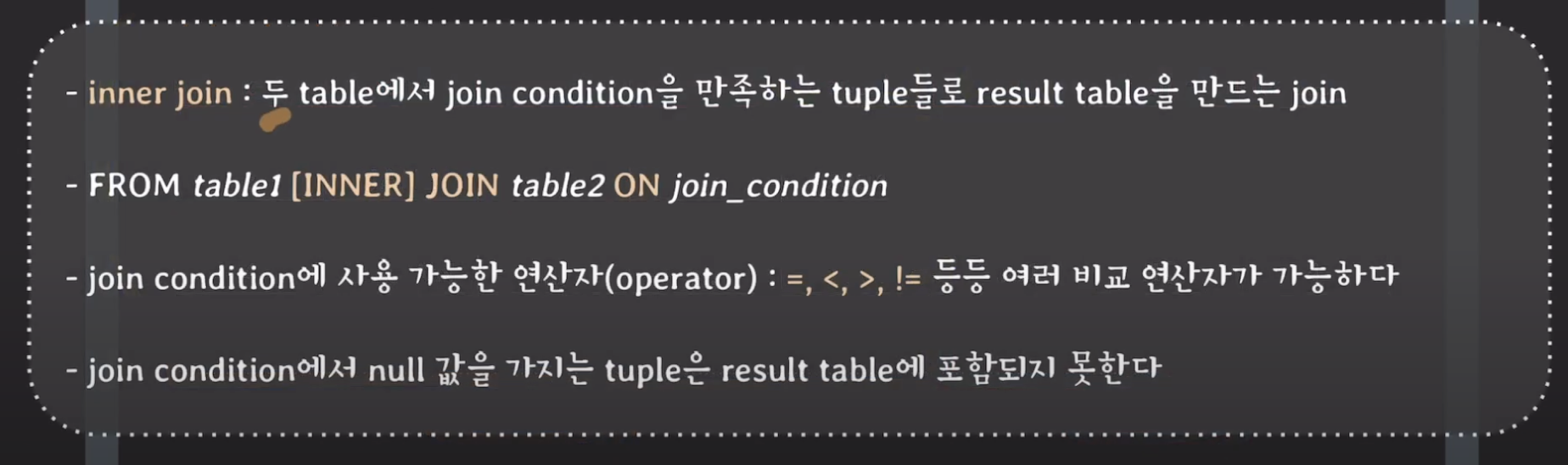 - inner join, outer join 상관없이 = 를 사용한 join이라면 equi join으로 보는 경우